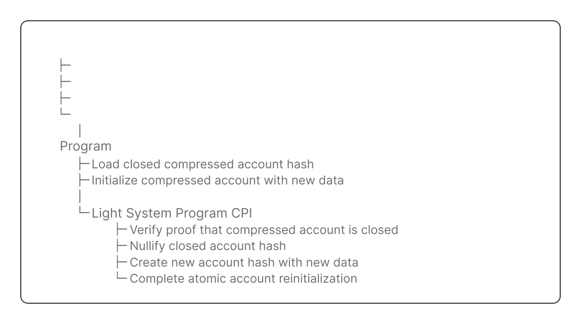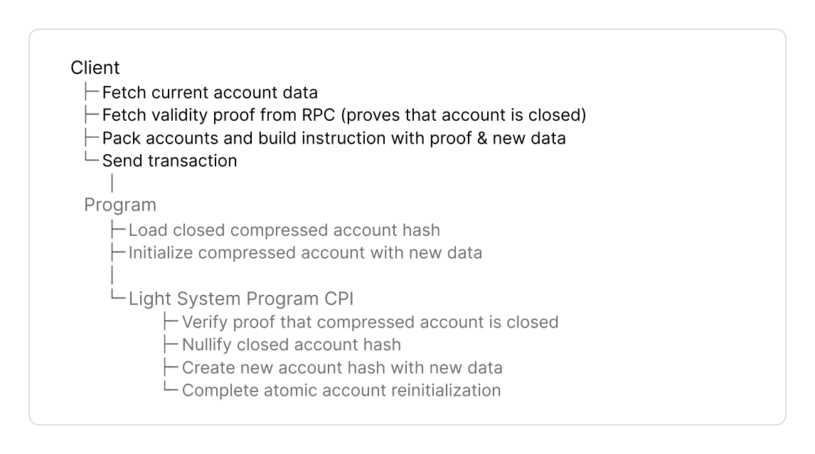 - In other instructions, you prove the compressed account hash exists in a state tree.